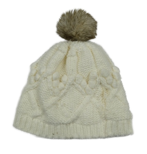Smotanová pletená čapica s bambulemi a brmbolcom