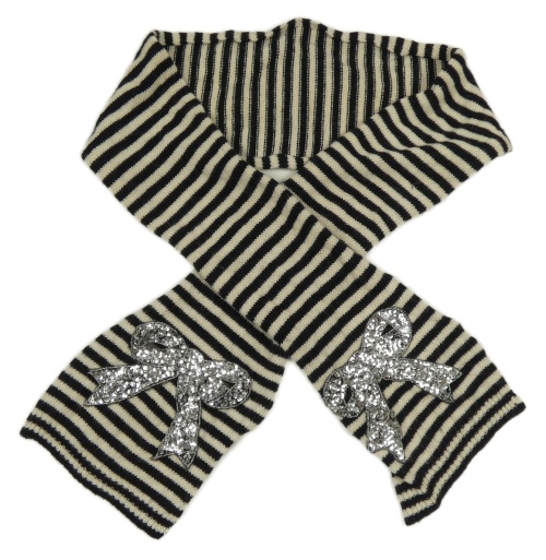 Béžovo-čierna pruhovaná šál s mašlemi z flitrů