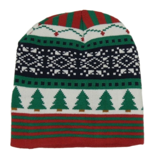 Zeleno-červená vzorovaná pletená vianočná čapica