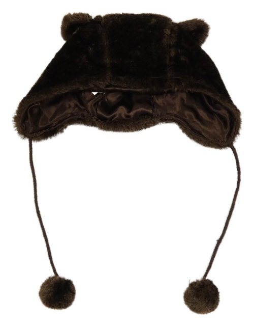 Hnedá kožušinová čapica s uškami a bambulemi
