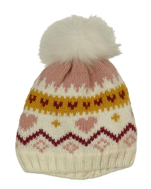 Smetanovo-ružovo-okrová vzorovaná pletená čapica s brmbolcom C&A