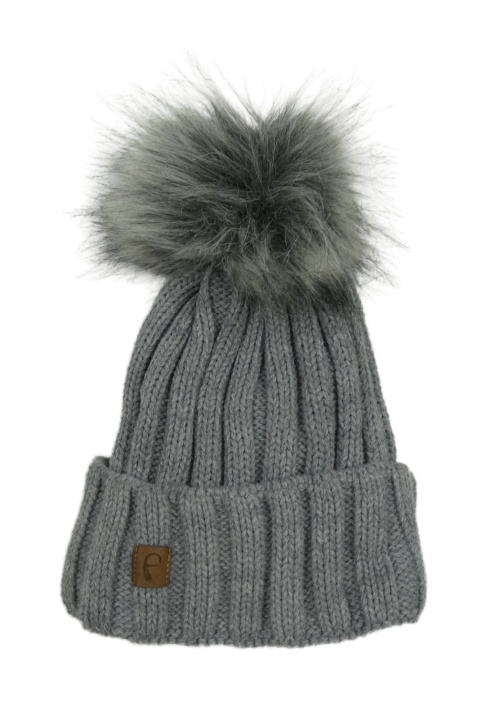 Sivá rebrovaná čapica s nášivkou a brmbolcom