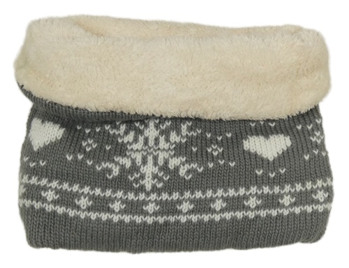 Šedý pletený zateplený nákrčník s vločkami a srdiečkami