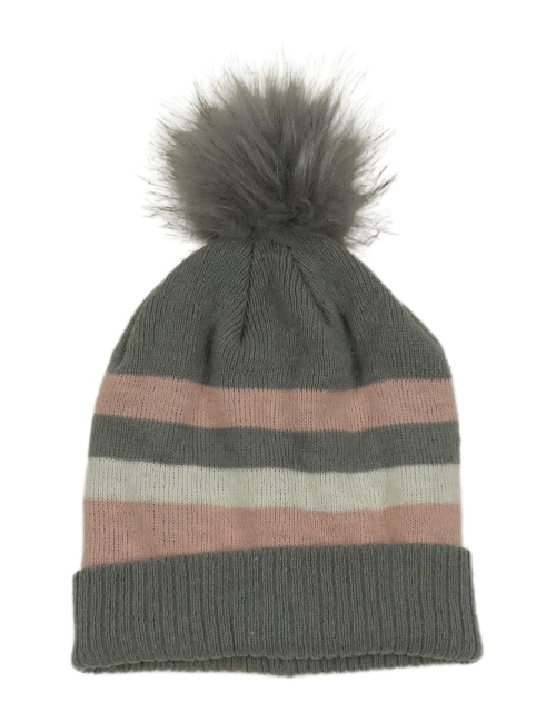 Sivo-ružovo-biela čapica s pruhmi a brmbolcom