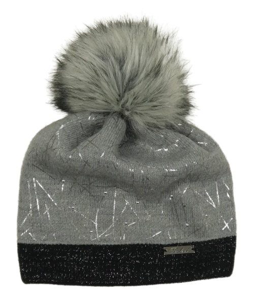Sivo-čierna vzorovaná pletená čapica s brmbolcom