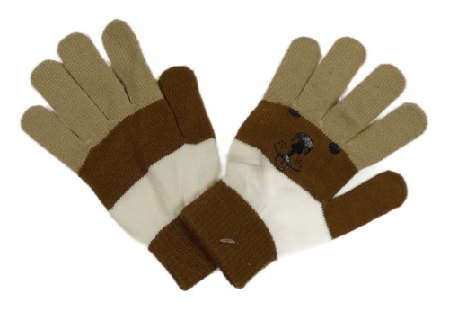 Hnědo-bílé pruhované pletené prstové rukavice s ňufáčikom