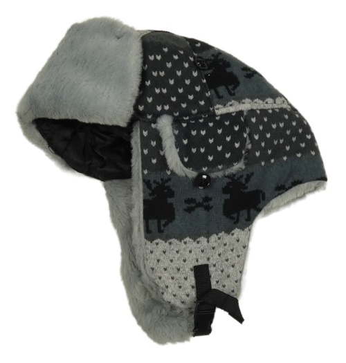 Tmavošedo-černá vzorovaná zateplená beranice s kožešinou