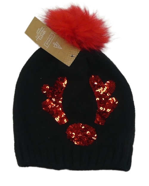 Nové - Čierna pletená čapica so sobem z flitrů a brmbolcom