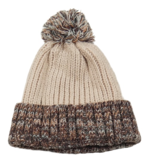 Svetloružová -hnedá pletená čapica s brmbolcom