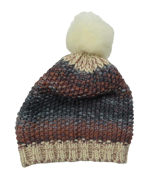 Modro-starorůžovo-smotanová melírovaná pletená čapica s brmbolcom