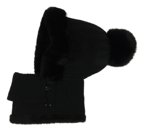 Černá zateplená kukla s kožešinou a brmbolcom