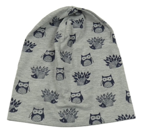 Sivá čapica s ježkami a sovičkami