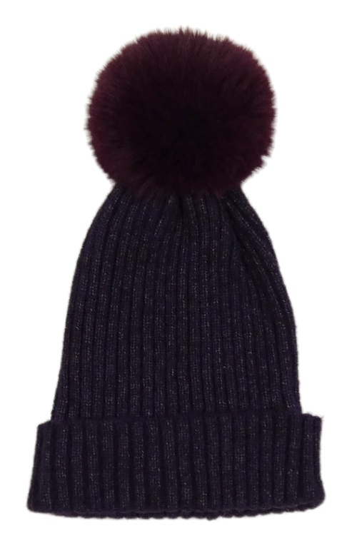 Tmavofialová melírovaná rebrovaná pletená čapica s brmbolcom