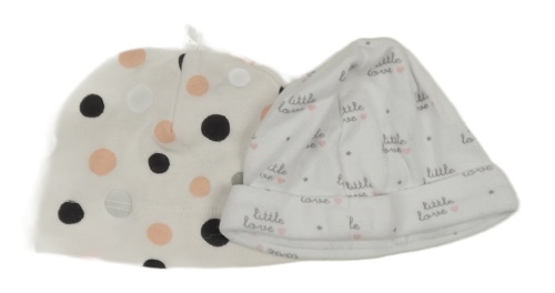 2x - Čepice - Smetanová bodkovaná LC WaIKIKI, bílá s LC WaIKIKI, bílá s nápisy a srdíčky