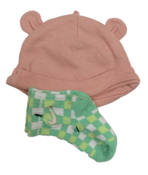 2Set - Ružová čapica s uškami F&F + zeleno/bílé kostkované ponožky s logem Nike