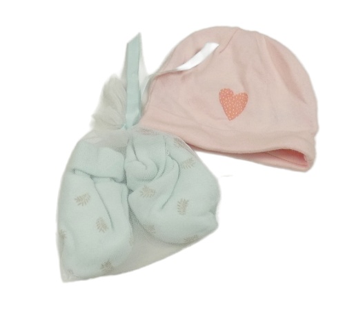 2Set - Svetloružová čapica so srdíčkem + pomněnkové zateplené rukavice s listy - nové