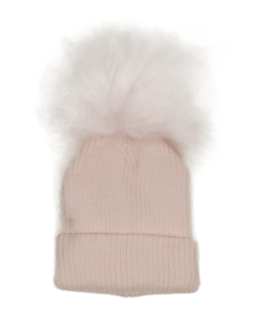 Svetloružová rebrovaná pletená čapica s brmbolcom
