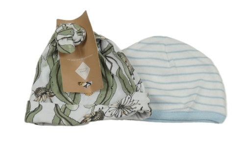 Nové - 2x - Čepice - Biela s květy, bílo/světlemodrá pruhovaná