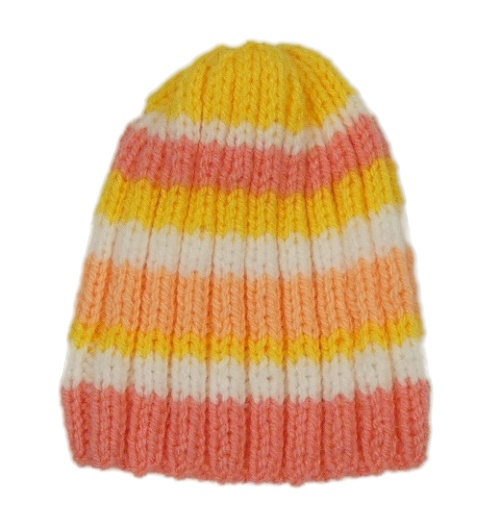 Ružovo-žlto-biela pruhovaná pletená čapica