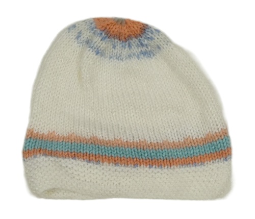 Biela pletená čapica s oranžovo-zeleným pruhom