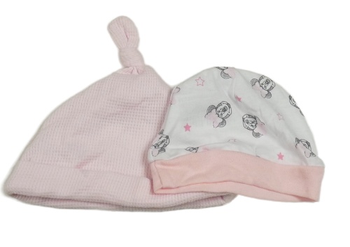 2x Svetloružová + bielo-ružová čapica s obrázky s Minnie