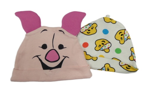 • 2x bavlněná čepice - smetanová bodkovaná s Pudseym + růžová - Prasátko