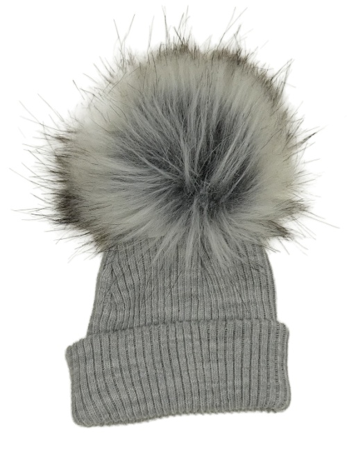 Sivá melírovaná rebrovaná pletená čapica s brmbolcom
