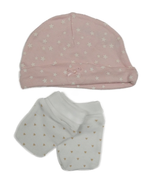 2set - Světlerůžová hvězdičkovaná čepice + bílé vzorované rukavice George