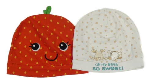 2x bavlněná čepice červená bodkovaná so smajlíkem+ bílá bodkovaná s obrázkom