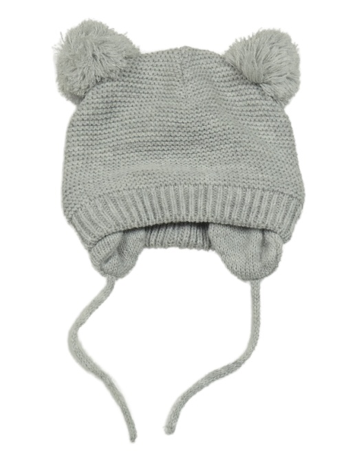 Sivá melírovaná pletená zavazovací čapica s bambulemi