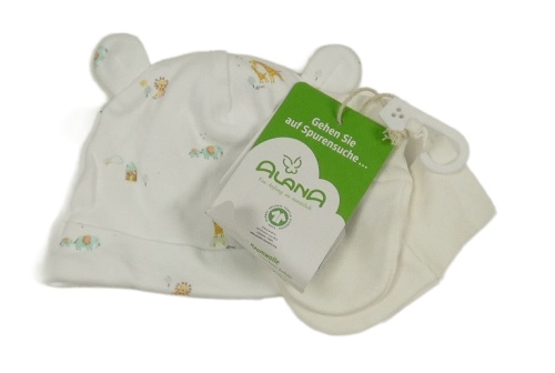 Nové - 2Set - Biela čapica so zvieratkami a domečky a uškami Next + rukavice ALANA