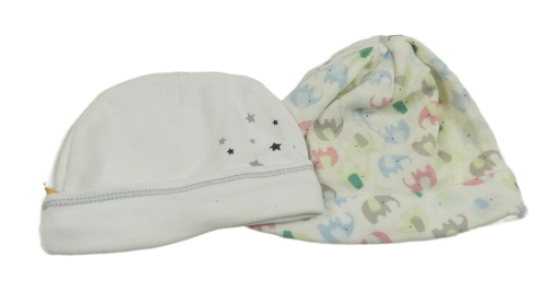 2x čepice biela s hvězdičkami+ biela so slonmi