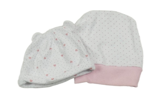 2x čepice bílá puntíkatá+ bílá bodkovaná so srdiečkami