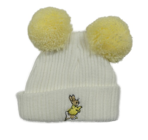 Bielo-žltá čapica s králikom a bambulemi