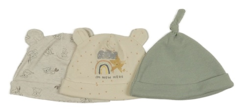 3x - Khaki + smotanová + béžová bavlnená čapica