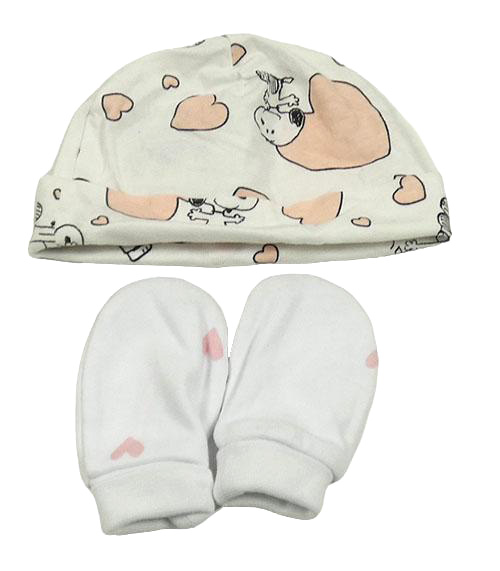 2set - Biela bavlnená čapica so Snoopym a srdíčky + bílé rukavičky so srdcem