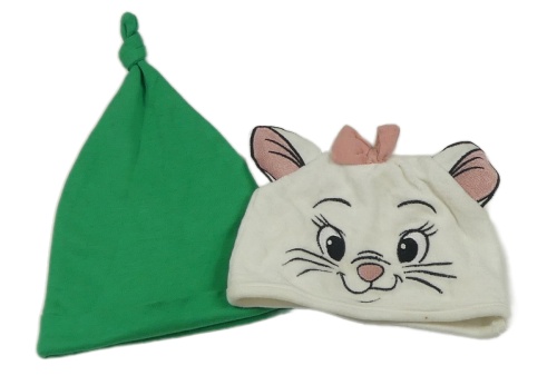 2set - 2x čepička - zelená + bílá sametová - kočička Marie