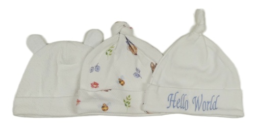 3x - Bílá + biela s nápisem + biela čapica so zajačikmi
