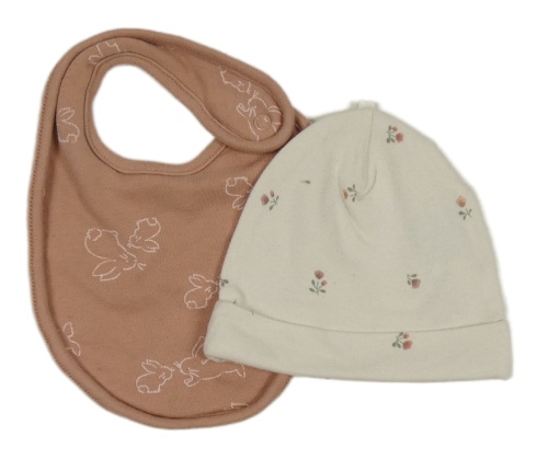2setr - Staroružový podbradník so zajíčky + biela čapica s kvietkami