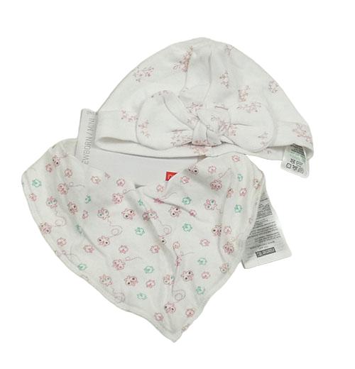 2set - Biela bavlnená čapica s listy a mašlí + bílý slinták s motýly