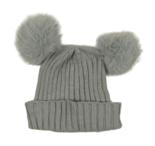 Sivá rebrovaná pletená čapica s bambulemi Matalan