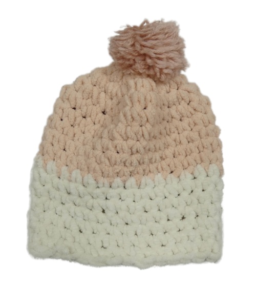 Svetloružová -biela žinylková háčková čapica s brmbolcom