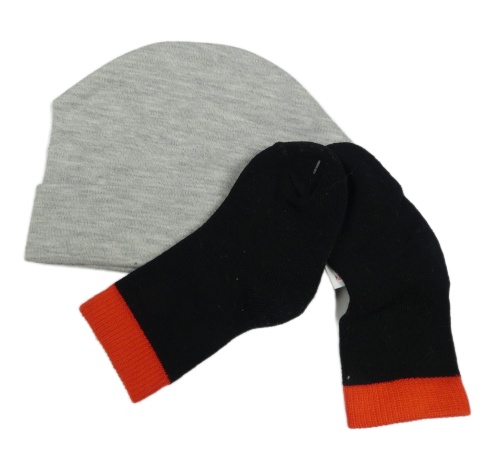2set- svetlosivá čepice+ čierno-červené ponožky