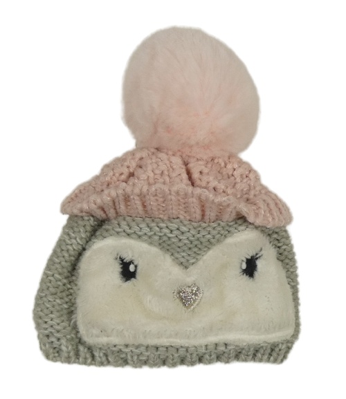 Světlešedo/růžová pletená čapica s bambulí - tučňáček F&F