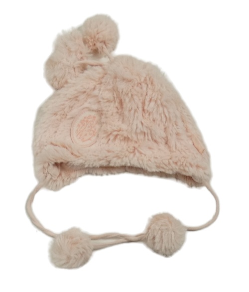 Svetloružová chlpatá podšitá čapica s bambulkami
