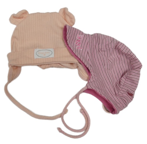 2x - Broskvová rebrovaná čepice + ružová čapica s prúžkami