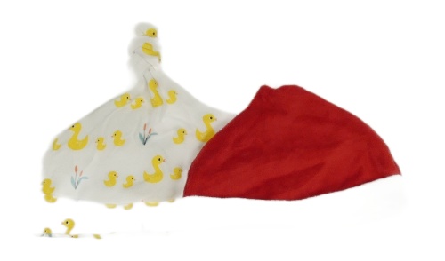 2set- biela bavlnená čapica s kačátky+ červeno-bílá sametová