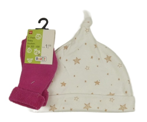 2set- biela bavlnená čapica s hvězdami+ rubínové teplákové ponožky