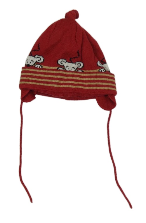Červená čapica s myškami a tkaničkou