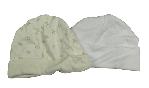 2x bavlněná čepice - bílá + krémová s hviezdami